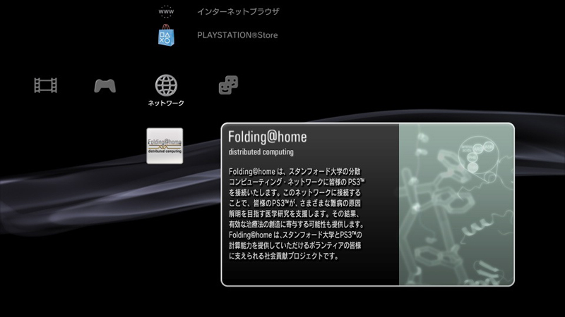 Folding@home est sans doute le projet le plus connu derrière seti@home et dispose d'une puissance de calcul considérable. Le cell, le processeur d'IBM utilisé dans la PS3, permettra de fournir 10 fois plus de puissance qu'un processeur de PC actuel.