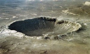 LES METEORITES : ce sont des morceaux d'asteroïdes qui se sont heurtés dans l'espace, ou des débris libérés dans la vaporisation des comètes. Lorsque les météoroïdes entrent dans l'atmosphère de la Terre, on les appele météores, et lorsqu'elles atteignent sa surface, on les appele météorites. Jusqu'ici, les restes de plus de 160 cratères d'impact ont été identifiés sur Terre. Voici les six les plus notables :