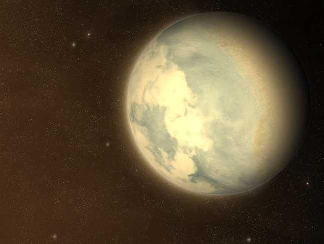 Vue d'artiste de Gliese 581 c, d'après l'hypothèse de la planète océan.