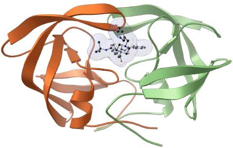 Après avoir implémenté la nouvelle version d'AutoDock sur World Community Grid, vous nous avez aidé à réaliser plus de 1.028.000 docking moléculaires (liaisons/amarrages moléculaires d'un ligand et d'un récepteur) sur le projet FightAIDS@Home. Chaque unité de travail consistait à lier un composé et une conformation (les différentes structures qu'une molécule peut prendre suite aux rotations autour d'une ou plusieurs liaisons simples) de la cible du médicament appelé "protéase du VIH". Voyez l'image ci-dessous, pour voir à quoi ressemble la cible du médicament. Être capable d'effectuer plus d'un million de liaisons moléculaires en seulement six mois démontre l'extraordinaire puissance des cycles processeurs inutilisés que vous offrez via la World Community Grid. L'équipe du projet FightAIDS@Home vous remercie chaleureusement pour votre intérêt et votre aide désintéressée.