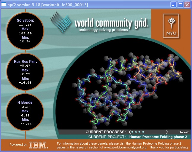 URL du projet : http://www.worldcommunitygrid.org/ Os supportées : Linux, Windows, MacOS. Début du projet : le 25 Juin 2006 Configuration minimale : 250 Mo de Mémoire Vive et 100 Mo d'espace disque disponible. Articles connexes : Toute l'Actualité des projets WCG |