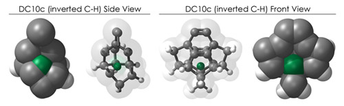 « Hydrogène ? Mais quel hydrogène ? » les raisons - le but de l'hydrogène dans l'univers est de combler les vides dans les molécules. Le but de la chimie quantique des pointes d'outils de dimère pour la mécanosynthèse diamant est d'éliminer le plus de structures possibles de sorte que les calculs (a) se terminent le plus rapidement possible et (b) puissent être effectués avec le "strict minimum" des structures au plus haut niveau de théorie possible afin d'obtenir les meilleurs résultats possibles. Les pointes d'outils actuellement étudiées sont des structures qui contiennent des dimères, des atomes de liaison (GE ou C), les atomes de carbone les plus proches des atomes de liaison pour recréer la géométrie du complexe de liaison atome/dimère, et des atomes d'hydrogène partout où un atome a un vide qui a besoin d'être rempli. Ces pointes d'outils correspondent alors au strict minimum des structures qui peuvent être modélisées relativement rapidement avec une capacité de calcul raisonnable. In silico, les atomes d'hydrogène sont complétés par des électrons stables autour de la phériphérie des atomes de carbone dans la pointe de l'outil pour maintenir le besoin informatique au minimum. En réalité (on le pense), ces pointes d'outils seront à la pointe de la technologie d'une ligne d'assemblage de pointe à outils. C'est-à-dire, que les atomes d'hydrogène se retrouvant dans des formes inversées ne feront pas partie du produit actuel et inversé un groupe C-C est, comment dire, je ne voudrais pas être dans une pièce remplis de produits de ce type.
